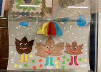 Fertig sind lustig ausschauende Herbstgesichter, die uns nun jedes Mal anlächeln, wenn wir in das Schulgebäude kommen.