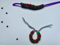 Der Pfeifenreiniger für die Schleife wird vorsichtig zusammengezogen, bis ein kleiner Kranz entsteht. Die Enden des Pfeifenreinigers für die Schleife werden miteinander verknotet