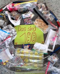 Zur Vorbereitung auf diesen Tag bietet es sich an, dass die Schülerinnen und Schüler verschiedene Dinge in 100-facher Ausfertigung (in Klarsichtbeuteln) mitbringen. Beispielsweise 100 Büroklammern oder 100 1-Cent-Münzen. Die mitgebrachten Gegenstände können dann im Klassenzimmer ausgestellt werden.