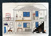 Das Zeichnen hat den Kindern große Freude bereitet. Manche haben ganz klassische Häuser gemalt, manche kamen auf kreative Ideen (wie z.B. gaming room) und manche haben noch an einen Anbau oder einen Garten gedacht. Es war schön mitanzusehen, wie die Häuser nach und nach entstanden.