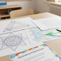 Der Umgang mit dem Geodreieck erfordert Übung. Ein „Geometrie-Führerschein“, bei dem Kinder komplexe Muster (z.B. Parkettierungen) entwerfen, motiviert mehr als reine Zeichenübungen.