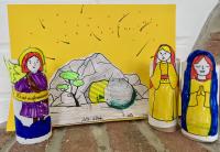Zur Einstimmung habe ich die Ostergeschichte erzählt und die einzelnen Figuren vorgestellt. Jedes Kind durfte selbst entscheiden, wie viel von der Osterkrippe er/sie basteln möchte, welche Figuren auftauchen und am Ende hatte jedes Kind eine eigene, persönliche Osterkrippe. Diese wird zu den Osterferien mit nach Hause genommen.