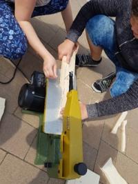 Im Kunstunterricht machten wir uns also an die Umsetzung: Auf Leimholz zeichneten die Schülerinnen und Schüler zunächst einen großen Stamm und anschließend jeder seinen eigenen Ast auf. Danach sägte jedes Kind diesen mit der Dekupier- sowie der Stichsäge aus. War er geschliffen, konnte der Ast mit Holzlack angemalt werden.