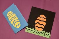 Gerade für spontane Vertretungsstunden bin ich immer auf der Suche nach kleinen Kunsteinheiten, die auch in einer Schulstunde umsetzbar sind und wenig Vorbereitungen erfordern. Da ich im Klassenzimmer eine Sammlung von verschiedensten Papierresten habe, die aus Kunstprojekten und Bastelarbeiten im Laufe der Jahre entstanden ist, bieten sich vor allem Gestaltungsaufgaben mit Papier an. Eine relativ einfache Technik ist der „Spaltschnitt“, mit denen wir passend zur Jahreszeit Ostereier gestaltet haben.