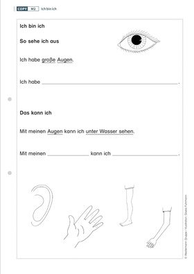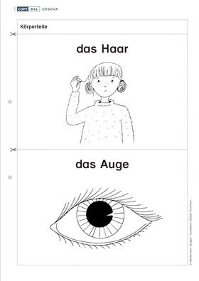 Ausgehend von dem Bilderbuch „Das kleine Ich bin ich“ von Mira Lobe gestalten die Kinder ein Selbstporträt mit der Freiheit, ihre Körperteile zu verändern und ihnen fantastische Fähigkeiten zuzuschreiben. Im Anschluss beschreiben sie sich und ihre neuen Fertigkeiten.