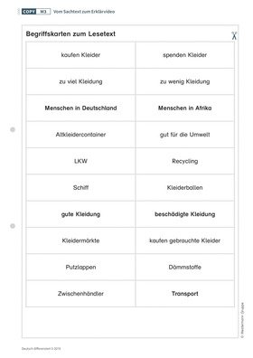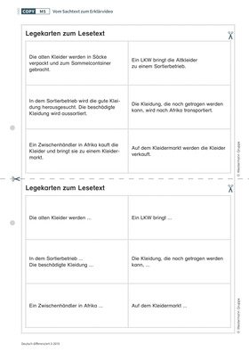 In Erklärvideos werden komplexe Sachverhalte auf anschauliche Weise dargestellt. In diesem Beitrag drehen die Lernenden ein Erklärvideo zum Thema „Der Weg der Altkleider“, nachdem sie zunächst mithilfe eines Sachtextes die erforderlichen Fachbegriffe erarbeitet haben.