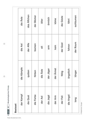 In dieser Einheit machen sich die Kinder das morphologische Prinzip zunutze und entwickeln Strategien zur Lösung des Umlautproblems. Dabei steht die mophologische Verwandtschaft von Wörtern im Fokus der Materialien.