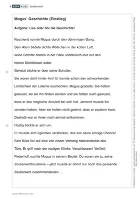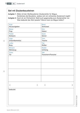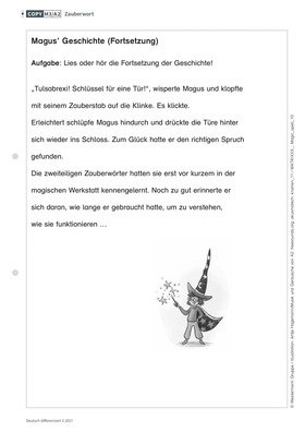 In der Unterrichtseinheit für die dritte und vierte Klasse setzen sich die Kinder mit Komposita auseinander und nutzen dieses Wissen, um schwierige Wörter in einem Text zu entschlüsseln und ihre Leseflüssigkeit zu verbessern. Als Einstieg in die Unterrichtsstunde lesen die Schülerinnen und Schüler im Klassenverband eine kurze Geschichte über den Zauberlehrling Magus und untersuchen im Folgenden zusammengesetzte Wörter unter dem Aspekt ihrer Bedeutung. Der Beitrag enthält Arbeitsmaterial mit der Geschichte des Zauberers, Übungen zum Bilden von Wortbausteinen und Fragen zum Leseverständnis.