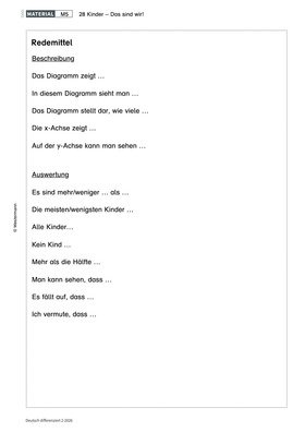 Anhand unterschiedlicher Darstellungsformen erkennen die Schülerinnen und Schüler in dieser Unterrichtssequenz die Vor- und Nachteile von Diagrammen – und vor allem, dass sich hinter jedem Balken, jedem Tortenstück und jeder Säule eine Geschichte, ein Mensch, ein Moment, ein Schicksal oder auch eine Entscheidung verbirgt. Somit wird auch das Bewusstsein für Unterschiede und Gemeinsamkeiten, für Sichtbares und Unsichtbares geschärft.