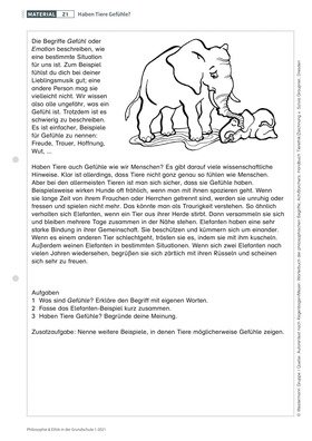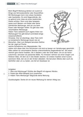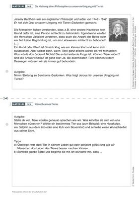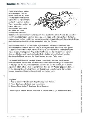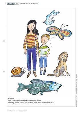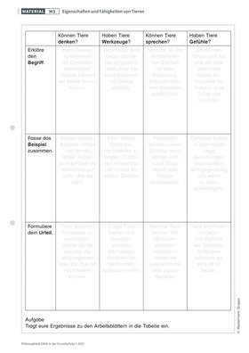 Die Unterrichtseinheit thematisiert die Eigenschaften und Fähigkeiten von Tieren anhand mehrerer als typisch menschlich geltender Merkmale. Dies ermöglicht es den Schülerinnen und Schülern, darüber nachzudenken, ob und inwieweit sich das Tier tatsächlich kategorial oder bloß graduell vom Menschen unterscheidet. Auf dieser Basis können sie reflektieren, was aus solchen theoretischen Überlegungen für die Alltagspraxis folgen könnte.