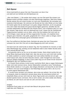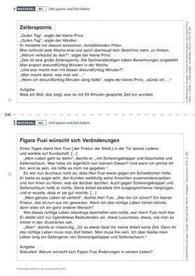 Zeit sparen und Zeit haben stehen für gegensätzliche Haltungen, mit der eigenen Zeit umzugehen. Zwei Erzählungen vertiefen die Kompetenz der Schülerinnen und Schüler, ihre Zeit sinnvoll zu gestalten.