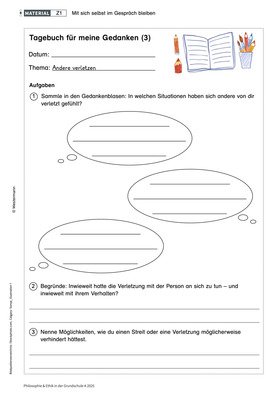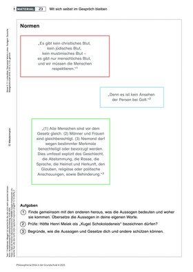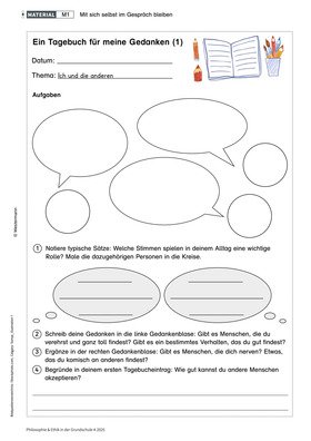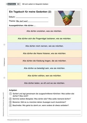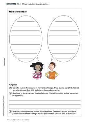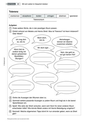 Im Außen erfahren Kinder von Geburt an Grenzen und Möglichkeiten. Sie gestalten und wirken. Im Grundschulalter klingt ihre innere Stimme schon immer mehr nach der eigenen. Kinder entdecken das Gespräch mit sich selbst, das Mut macht, Sachverhalte einordnet und Sicherheit schafft. Doch gerade in Toleranzfragen wirkt die Stimme unsicher und suchend: Was muss ich aushalten, wann erhebe ich meine Stimme? Kinder erleben, dass sich ihre Einstellung im Laufe der Zeit ändern kann, und lernen ihre innere Stimme immer besser kennen.