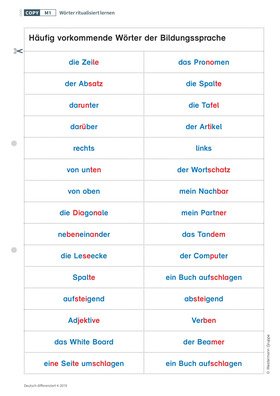 Kinder lernen in der Schule viele neue Wörter, die unter anderem auch der Bildungssprache zuzuordnen sind. Dieser neue Wortschatz muss ebenso geübt werden. Mit Ritualen kann ein Sichtwortschatz aufgebaut werden, bei dem Kinder nicht nur gängige Begriffe, sondern auch deren Rechtschreibung lernen.
