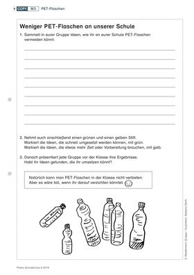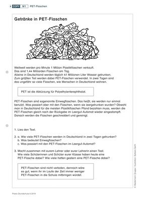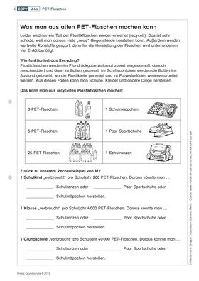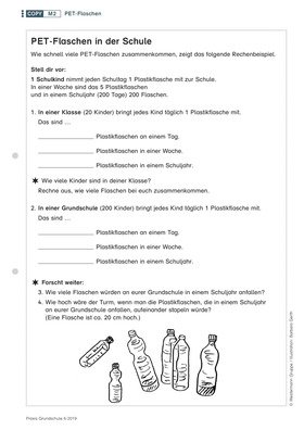 Kinder berechnen den schulischen Verbrauch von PET-Flaschen und die Menge recycelter Materialien, die aus diesen Flaschen entstehen kann.