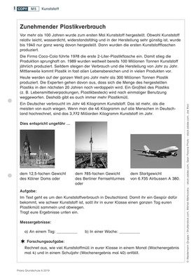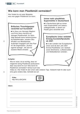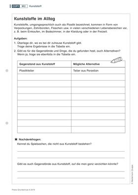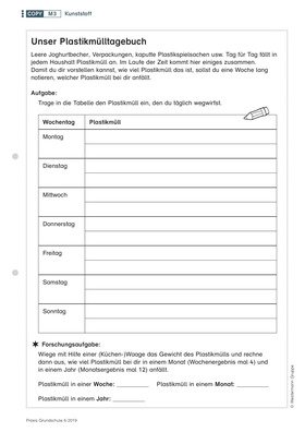 Kinder suchen Plastik in ihrer Umgebung, dokumentieren ihren eigenen Kunststoffverbrauch und überlegen sich Alternativen dazu.