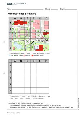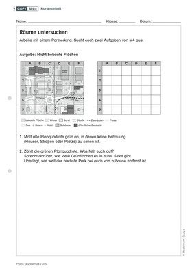 In digitalen Karten werden viele Informationen gespeichert. Um sich dieser Datenvielfält anzunähern, abeiten die Kinder an analogen Karten mit Rasterquadraten zu verschiedenen Themen.