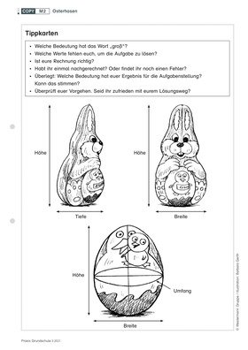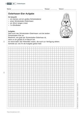 Ostern ohne Schokolade ist für Grundschulkinder undenkbar. Grund genug, dies zum Inhalt einer Modellierungsaufgabe im Mathematikunterricht zu machen. Die Kinder berechnen die Größe fiktiver Schokohasen und Schokoeier und lernen das Vereinfachen einer Problemsituation. Eine schnelle Unterrichtseinheit mit Kopiervorlage zum Thema Rechnen mit Längeneinheiten ab der zweiten Klasse, idealerweise rund um die Osterferien und in einer offenen Lernumgebung – auch für Vertretungsstunden geeignet.