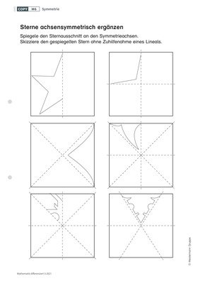 Weihnachtssterne und Schneekristalle laden zur aktiven Auseinandersetzung mit Symmetrien ein. Die Kinder lernen in dieser Unterrichtseinheit achsen- und drehsymmetrische Figuren kennen. Sie ergänzen durch mentales Operieren Teilguren und überprüfen eine Spiegelung oder eine Drehung.
