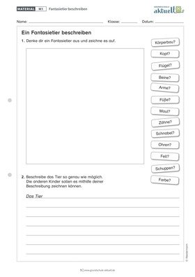 Bei dieser Aufgabe sollen Kinder sich ein Fantasietier ausdenken und so beschreiben, dass andere Kinder sich dieses Tier auch vorstellen können....