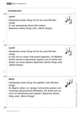 Digitale Medien können den Musikunterricht bereichern. Mit Hilfe der kostenlosen App GarageBand können auch schon Grundschulkinder mit wenig Aufwand ganze Musikstücke komponieren. Der Beitrag beschreibt die Umsetzung im Unterricht und enthält Arbeitskarten für die Schülerinnen und Schüler