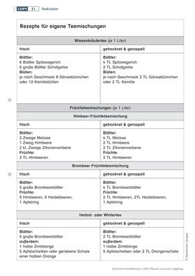 Was steckt in Teebeuteln drin? Aus welchen Pflanzen kann man Tee herstellen? Und schmeckt Tee aus frischen Kräutern anders als getrockneter Tee? In dieser Einheit werden unterschiedliche Tees zubereitet, probiert und deren Geschmack verglichen.
