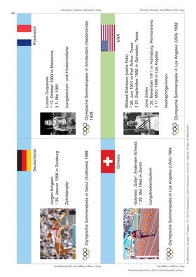 Auf 16 Karteikarten werden Sportlerinnen und Sportler der Olympischen Spiele der Neuzeit vorgestellt. Die Karten können vielfältig eingesetzt werden.