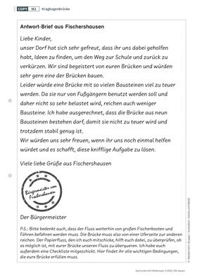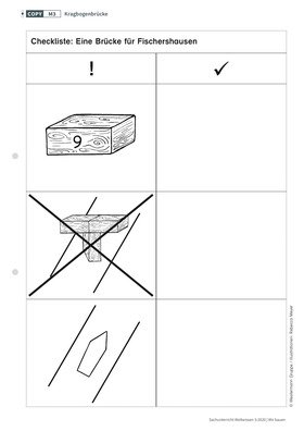 Ist es möglich, eine Brücke ohne Stützen zu errichten? In welchen Fällen ist diese Brücke stabil, in welchen stürzt sie zusammen? Eingebettet in eine Geschichte rund um Fischershausen setzen sich die Kinder mit den Prinzipien des Auskragens und der Stabilisierung durch Gegengewichte auseinander.