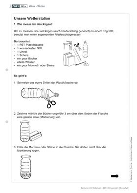 Sind einzelne Wetterextreme ein Beleg für den Klimawandel? Nein! Erst statistisch messbare Änderungen des Klimas erlauben dahingehende Rückschlüsse. Der Zusammenhang zwischen Wetter, Klima und Klimawandel wird den Kindern durch die Auseinandersetzung mit Wetterelementen deutlich.
