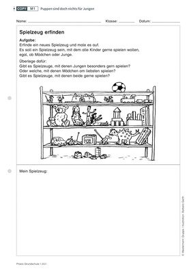 Auf der Basis eines Bilderbuchs zum Thema Spielzeug werden gängige Geschlechterstereotypen besprochen und hinterfragt.