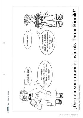 Den Klettverschluss kennen Kinder aus ihrer Lebenswelt. Zusammen mit den Leitfiguren „Bio“ und „Nik“ vollziehen die Kinder nach, wie aus einem biologischen Phänomen bei der Großen Klette das technische Produkt Klettverschluss abgeleitet und entwickelt wurde.