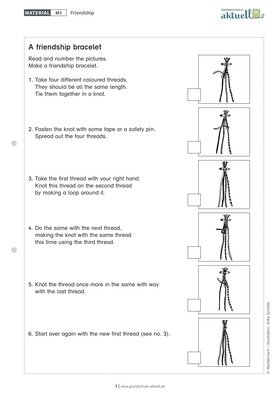 Mit der Anleitung können die Kinder im Englischunterricht ein Freundschaftsarmband basteln.