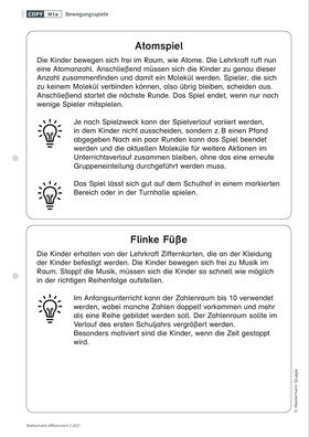 Die ersten Wochen in der Schule stellen nicht nur für viele Kinder eine Herausforderung dar: Auch als Lehrerin oder als Lehrer muss man sich nach Abgabe einer vierten Klasse wieder an die „Kleinen“ gewöhnen und ihre Fähigkeiten und Bedürfnisse im gesamten ersten Schuljahr berücksichtigen. Die Konzentrationsphasen sind kurz, der Bewegungsdrang hoch und die Aufnahmebereitschaft nimmt über den Schultag hinaus kontinuierlich ab. Erfahrungsgemäß erweist sich daher der wiederkehrende Einsatz von mathematisch aktivierenden Spielen als sinnvoll und gewinnbringend.
